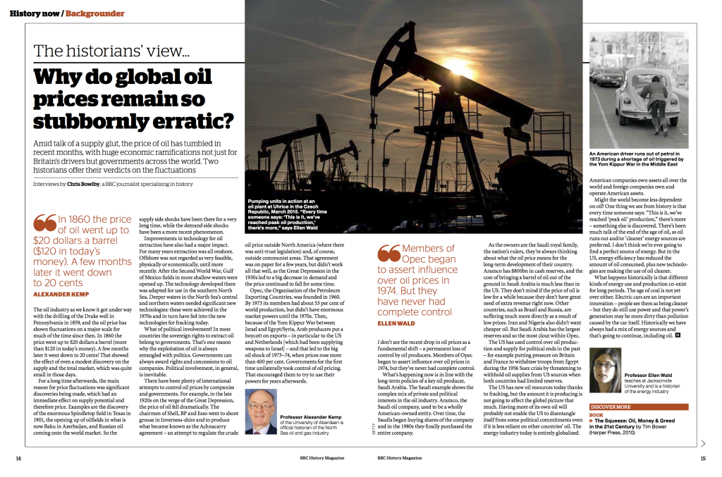 Read more about why global oil prices are “so stubbornly erratic” in my interview with BBC History Magazine in their May issue.
